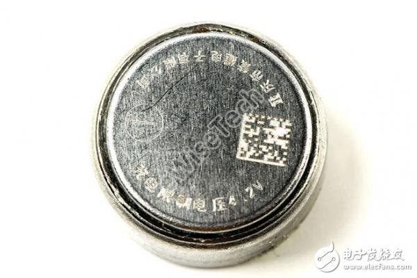 去掉外层包装后,我们就可以看到电池采用的是重庆紫建电子有限公司的可充电纽扣锂离子电池LIR1254C,3.7V,55mAh。