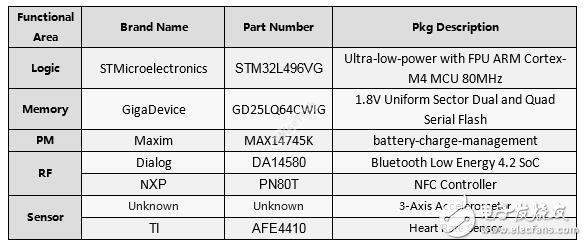 主板上使用的Logic、Memory、PM、RF和MEMS芯片芯片使用信息见下表: