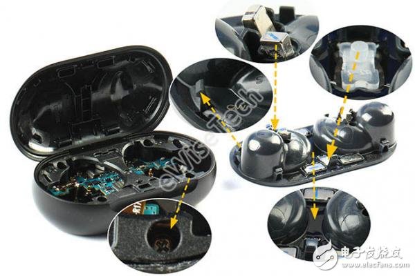 Galaxy Buds的充电盒虽然看起来很小,但是还是分了很多层,并且中间有不少小部件用于连接,有些部件还是通过焊点连接的。所以不建议小伙伴自行拆解。底部贴有一层无线充电线圈。可以用于无线充电还可以配合S10反向充电。