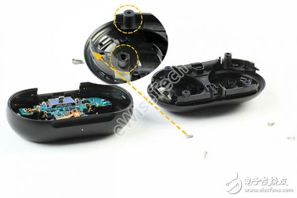 拧掉螺丝,松动卡槽,即可拆开内支撑和底壳。可以看到主板上面有四个螺丝孔位。翻过来内支撑可以看到,后面螺柱高度是不一样的,所以在拆解的时候注意把卡扣松动后一定要水平后取下。