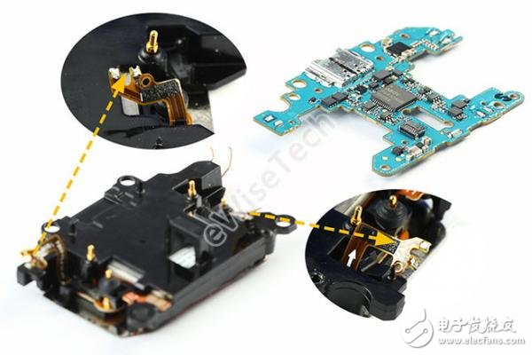 由于主板通过软板焊盘进行焊接固定的,所以先用电烙铁融化焊点,分离主板。软板除了焊接固定,背面还贴有黑色双面胶进行双重固定。