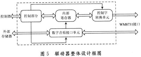 驱动器内部结构框图如图5所示。控制部分提供驱动器与控制器之间的接口(包含有数据总线信号、地址总线信号和控制信号),同时产生控制字转换单元和数字