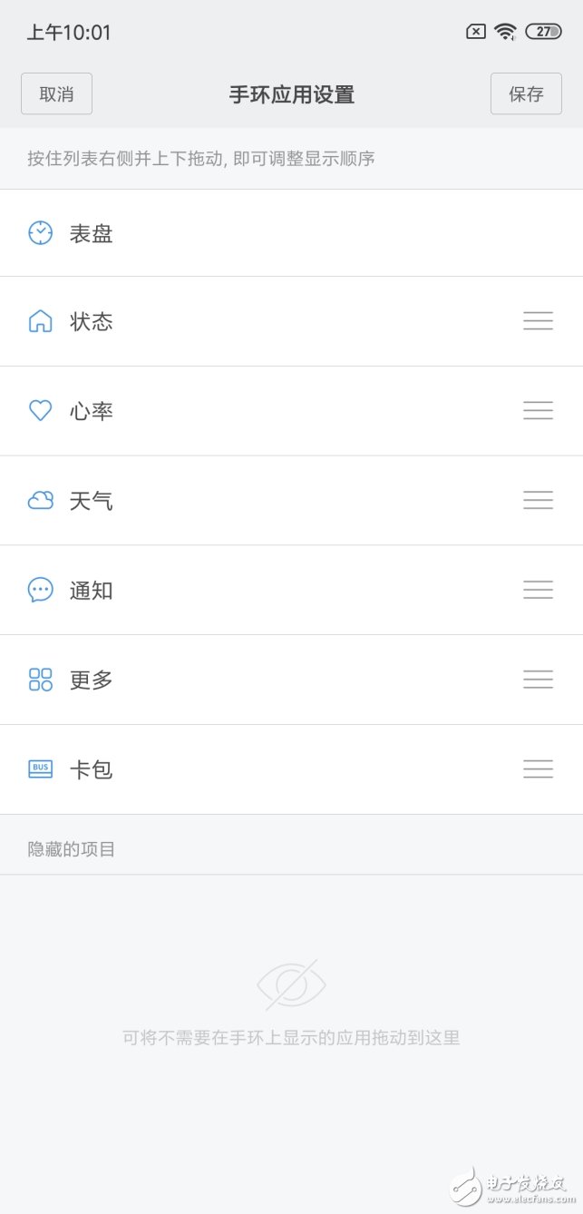 手环默认开启全部显示应用类目,使用者如有自觉赘余鸡肋者,可以自行关闭,给予最大程度的自由度。