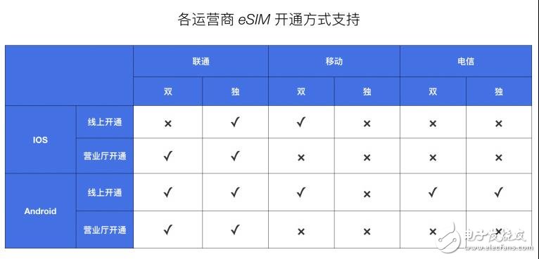 现阶段各运营商 eSIM 业务支持情况