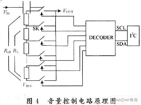 在音频处理器中,音量的调节是最基本的功能。实现I2C总线控制的数字式音量调节的主要原理如图4所示。
