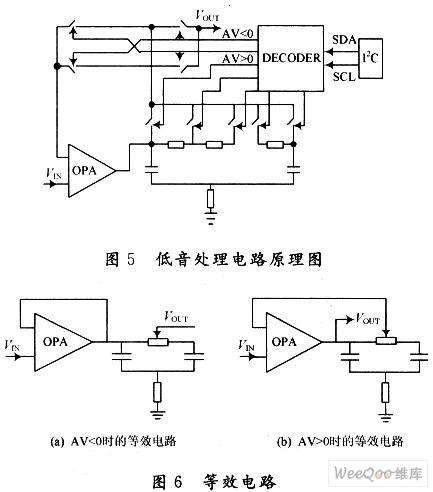 电路原理;但这种设计左右声道的高、低音处理电路中就必须包含4个运放单元,很大程度上增加了版图面积和芯片成本。在此采用交叉开关对实现了运放复用的功能,只利用一个运放单元就实现了信号的放大和衰减,很大程度地降低了芯片成本。