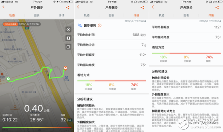 从实际的测试结果来看,华为手环3e能够提供的跑姿数据还是非常详尽的,比如:着地方式、触地时间、着地冲击、外翻幅度、摆动角度、步幅、步频等,而这些数据我们在平时其实并不容易获取,华为手环3e无疑为我们提供了非常便捷的一种途径。另外,华为手环3e在脚上佩戴模式下也非常牢固,不用担心会丢失手环主体,即使在户外场景下也可以放心佩戴。