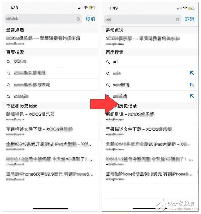 3、Safari 在搜索时增加了小箭头。