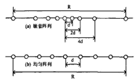 Linear Array,ULA)和嵌套线性阵列,如图2所示。均匀线性阵列是最简单的阵列拓扑结构,其阵元之间距离相等、相位及灵敏度一直。嵌套线性阵列则可看成几组均匀线性阵列的叠加,是一类特殊的非均匀阵。线性阵列只能得到信号的水平方向角信息。
