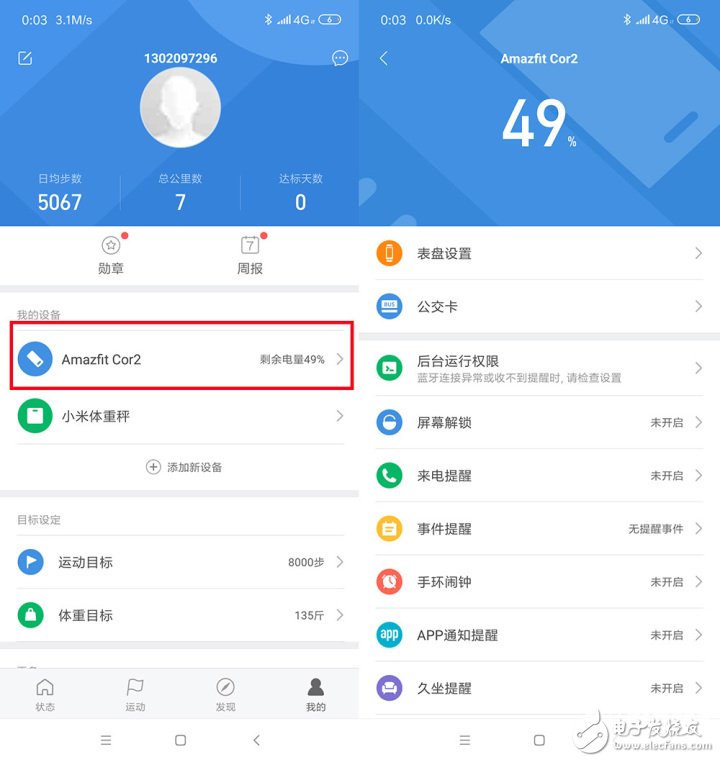 进入小米运动APP,使用过的用户一定会十分熟悉,首页是主要的运动信息,“我的”界面可以看到连接的设备,并可以详细设置AMAZFIT米动手环2的相关信息。
