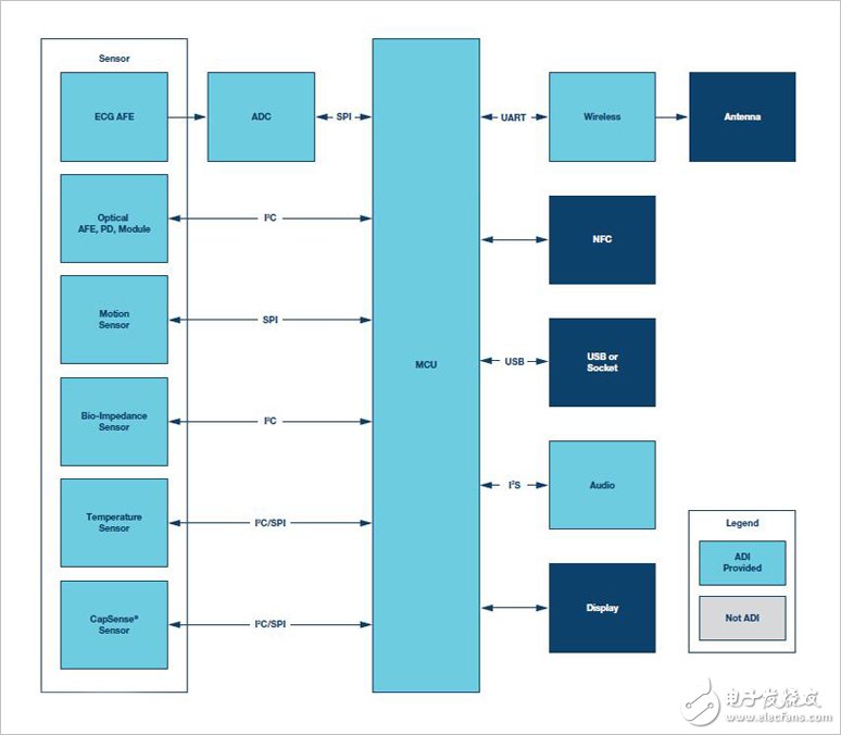 ADI公司提供大量的高集成度AFE、运动传感器、低功耗MCU和电源管理解决方案,使可穿戴设备的产品质量和可靠性达到最佳程度。此外,ADI公司还提供评估板、仿真工具和应用专业技术,为客户的设计和开发工作提供支持。