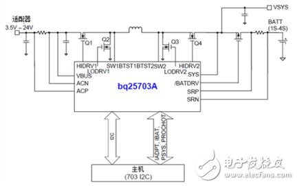 由于C型USB端口是通用的,且具有很高的功率传输能力,是适合此类应用的理想选择。为了兼容具有不同电压和功率电平的电源,诸如无人机这样的多元电池组系统很有必要使用降压升压充电器。在飞行间隔期间,用户能够快速而安全地对电池进行充电也是至关重要的。bq25703A和bq25700A支持高达6.35A的充电电流,并具有广泛的保护功能,包括有助于从各种适配器获得最大功率的输入电流优化(ICO)。图1提供了bq25703A应用图中的附加信息。