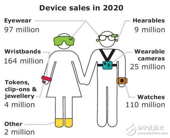 国外市调机构对2020年各类可穿戴设备市场的预测示意图,资料图