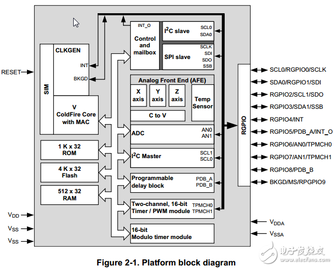 MMA9553L是飞思卡尔的一款计步传感器,你可能还见到过MMA955xL, 它与MMA9553L是什么关系呢?简单的来说MMA955xL是一个统称,它包括MMA9550L、MMA9551L、MMA9553L和MMA9559L这几个具体型号,其实这四种传感器在硬件上都是一样的。其内部主要由ColdFire 内核、模拟前端、Flash、IIC和SPI接口等部分组成。