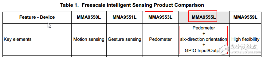 客户经常会问MMA9553和MMA9555的区别,从上图可以看出MMA9555相比较MMA9553多了 Six-Direction 检测和GPIO Input/Output 功能。其他的功能都是相同的。