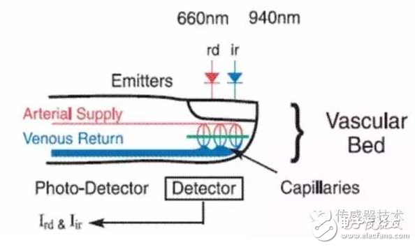 原理就是用红光和红外光发射,这两个要非常将近,保证他们在手指基本上非常接近的位置,可以保证检测的准确度。这本身对传感器技术,LED也是挑战。
