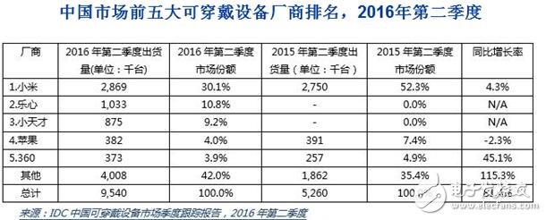 乐心、小天才、苹果和360分居2-5位,前五大厂商占据市场份额为58%。
