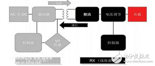 典型的电池感应式无线充电原理框图: