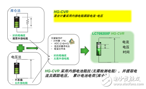 其中V(VARIED)是随负载电流变化的电压,V(MEAUSRED)是测得的电压,R(INTERNAL)是电池的内部电阻。内部电阻受剩余电量、负载电流、温度等因素影响。HG-CVR法在监测电压后提取电荷(库仑),并使用电阻配置档表和电压配置档表计算。