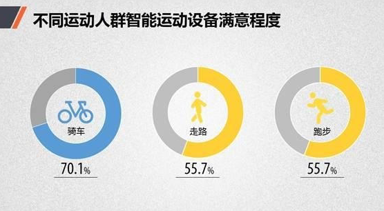 首先我们把研究对象集中于已经购买了可穿戴设备的用户群。据调查,七成骑车人群对已使用的智能设备非常满意。以跑步和走路为主要运动方式的人群,对智能设备的满意度也都超过50%。因此,如果你经常骑车,那么可能你比其他人更适合智能运动设备。
