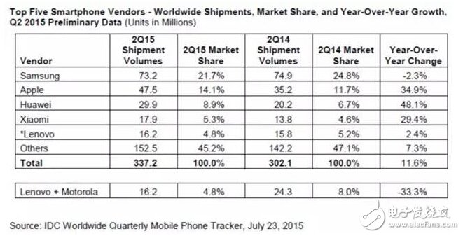 同样是来自IDC的数据,全球2015年2季度智能手机的出货量,前五的玩家中,与穿戴产品前五的玩家重合有3家,说明穿戴市场到底还是被这些移动终端厂商在把持,同时最大的玩家占比也就在20%左右,“other”超过40%,和穿戴产品一样,智能手机的长尾玩家也有很多。