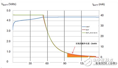 所以,电池越小,终止控制就越关键。对于容量只有20mAh的电池来说,如果不能将终止电流控制在5mA以下,那么在开始使用电池之前就已经损失了10%电池电量。