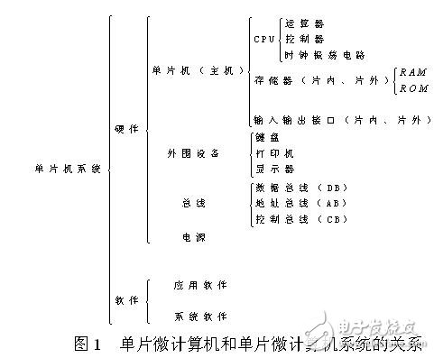 单片机要进行工作,必须构成单片机系统。单片机系统实质上就是一个微计算机系统,它主要由硬件和软件两大部分组成,硬件是指构成计算机系统的所有电子、机械和磁性的部件或设备,软件则是各种程序及数据的总称。图1给出单片微计算机系统的具体构成。