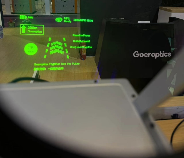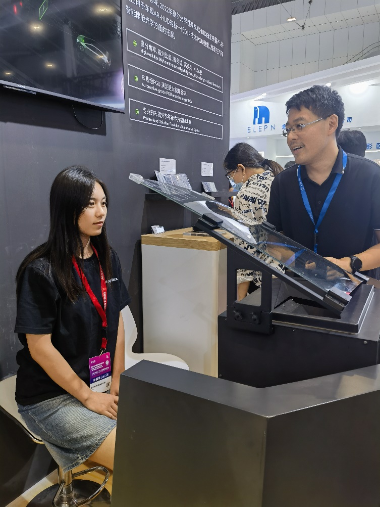 除XR光学产品之外,前沿光学在新能源汽车上应用也是本次展会关注的重点。歌尔光学针对当前汽车中AR-HUD技术中的视角调整和显示模糊问题,展示了一款创新的AR-HUD同轴双焦面模组解决方案。