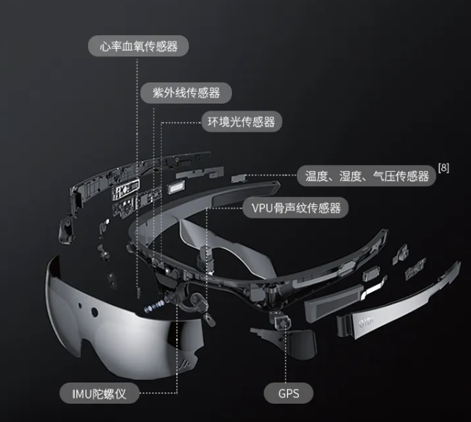 健康监测功能主要面向骑行等运动类智能眼镜的应用场景。 例如奇点临近推出的QIDI Vida AR 运动眼镜,搭载了
