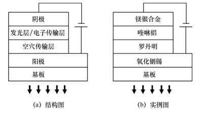 由于单层结构存在较难克服的缺点,目前OLED器件大多采用多层结构。这一里程碑式的工作于1987年由Kodak公司首先提出,该结构能有效达到调整电子和空穴的复合区域远离电极和平衡载流子注入速率的目的,在很大程度上提高了器件的发光效率,使OLED的研发进入到一个崭新的阶段。