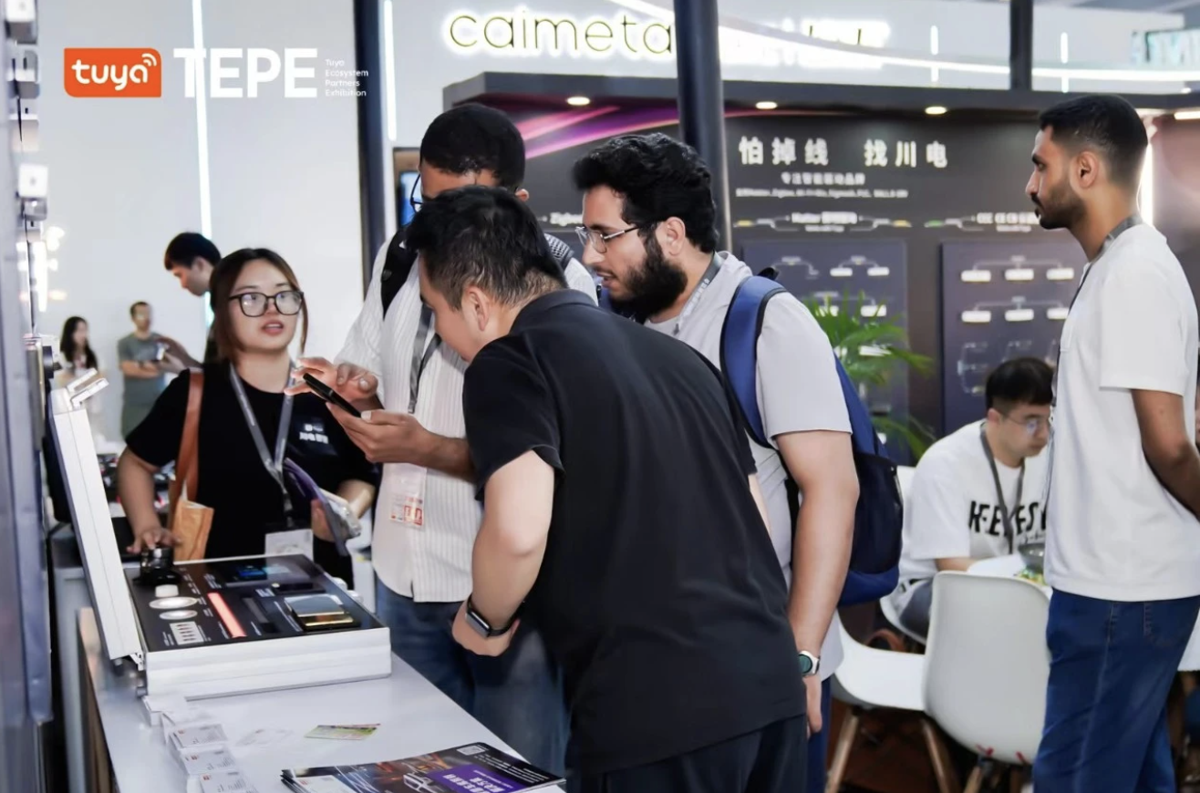 【参展者在涂鸦智能全球生态展驻足咨询】