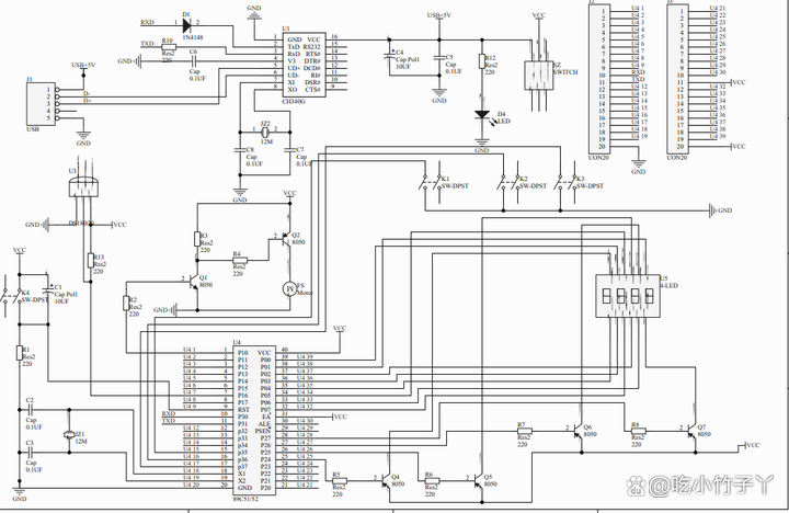 1.本设计基于STC89C51/52(与AT89S51/52、AT89C51/52通用,可任选)单片机