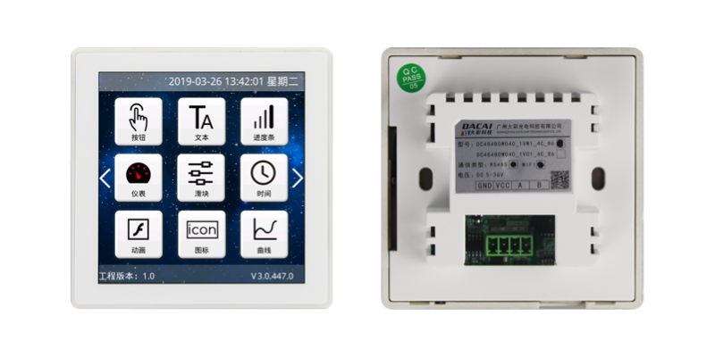 该例程使用大彩W系列4寸串口屏DC48480W040_1111_0T为验证开发平台。如图5-1所示;