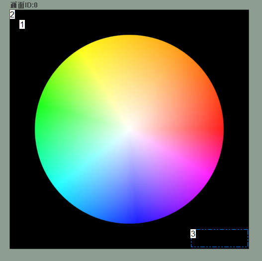 在画面ID0中,添加一个按钮控件(控件ID1)、一个图标控件(控件ID2)和1个文本控件(控件ID3),其中控件ID1为色盘,供用户选色;控件ID2为选中效果,用户点击色盘后,控件ID移动到当前位置并显示‘白色的圈’,表示当前选中的颜色;控件ID3为显示固件版本号。如图5-3所示: