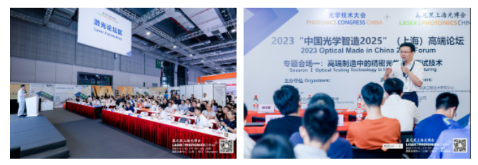 除展区外,开展首日同时迎来了光学技术大会PHOTONICS CONGRESS CHINA,多个平行论坛精彩呈现,包括2023“中国光学智造2025”(上海)高端论坛、激光技术创新持续赋能智能制造论坛、新能源汽车激光技术前沿论坛、光学镀膜技术及应用交流会、光子硬科技产业投融资论坛,邀请到激光、光电行业内来自协会、科研院校及企业的在激光、现代光学、红外光电,新材料、物理及化学研究等方面有深刻造诣的知名专家学者们,围绕光学技术、激光智能制造、激光技术、先进激光器、精密光学、光学镀膜、光通信、光收发模块、动力电池等科研成果和进展展开技术及学术探讨,为应用市场提出理论依据、共话光电行业未来。