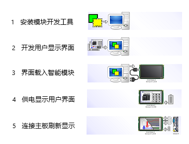 智能TFT液晶模块系列产品颠覆了传统带控制器液晶产品的形象,帮助客户摆脱了大量显示界面数据实时存储、传输、显示刷新等客户主板程序的开发工作,客户可以通过拓普微免费提供的上位机开发工具快速实现显示界面设计,下载预置在智能模块中即可实现界面显示,大大缩短客户项目开发周期。