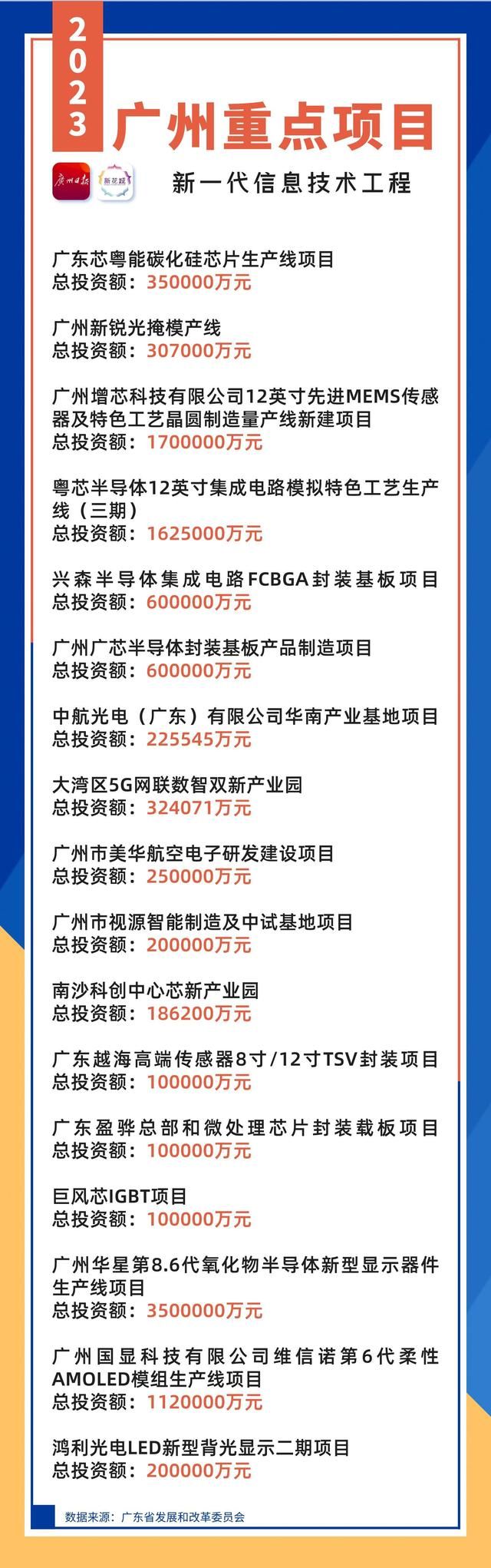 2月10日,广州市发改委印发《广州市2023年重点建设项目计划》和《广州市2023年重点建设预备项目计划》。在这些重点项目中,多个Mini/Micro LED项目入选。能够看到,在广州2023年重点建设项目计划的“新一代信息技术工程”类别里面,除了热门的