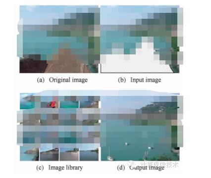 在摄影创作时常常需要对场景中某些元素进行后期加工,如在场景中添加主体、替换图像中不合适的部分使之更自然美观。计算成像技术研究中一个重要部分就是对场景中主体的提取以及场景的合成。为了弥补某些图像在拍摄时构图考虑不周详等因素带来的遗憾,图4所示为一种基于百万图像的场景合成方法。该方法通过在巨型数据库中搜索与待合成图像中缺失部分相似图像,利用图像合成方法进行场景合成获得完美图像。虽然这种方法消耗巨大的计算量,搜索时间较长,但它代表了计算场景的一个典型应用方向。