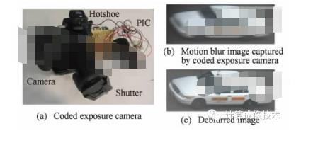 传统相机拍摄运动物体时往往由于曝光时间长于安全快门导致物体运动模糊,如图5( b) 所示,运动模糊图像复原是一个著名的病态问题。计算成像在不提高光学元件性能的前提下,通过对相机快门工作过程的改造,更好地解决了运动模糊复原这一传统难题,如图5( a) 所示。这种相机在曝光过程中,镜头前面的快门会不停地开关动作,其开关的间隔时间是经过预先编码优化设计的这样的编码快门可以看成是一个宽带滤波器,使用这种相机拍摄的照片能够更多地保留场景的高频信息,并且将传统反卷积问题转换为良态问题( well-posedproblem),从而恢复出清晰的照片,如图5(c)所示。