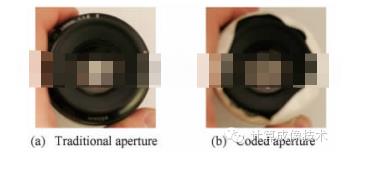 如图6所示为使用一个编码光圈替代传统光圈形成编码光圈相机。与编码快门类似编码光圈可以看作是将传统光圈改进成一个宽带滤波器。使用编码光圈相机拍摄的照片经过处理后可以得到高分辨率的全对焦图像和场景深度图。利用全对焦图像和场景深度图可以让用户在拍摄后选择对焦点进行重新对焦,如图7所示。