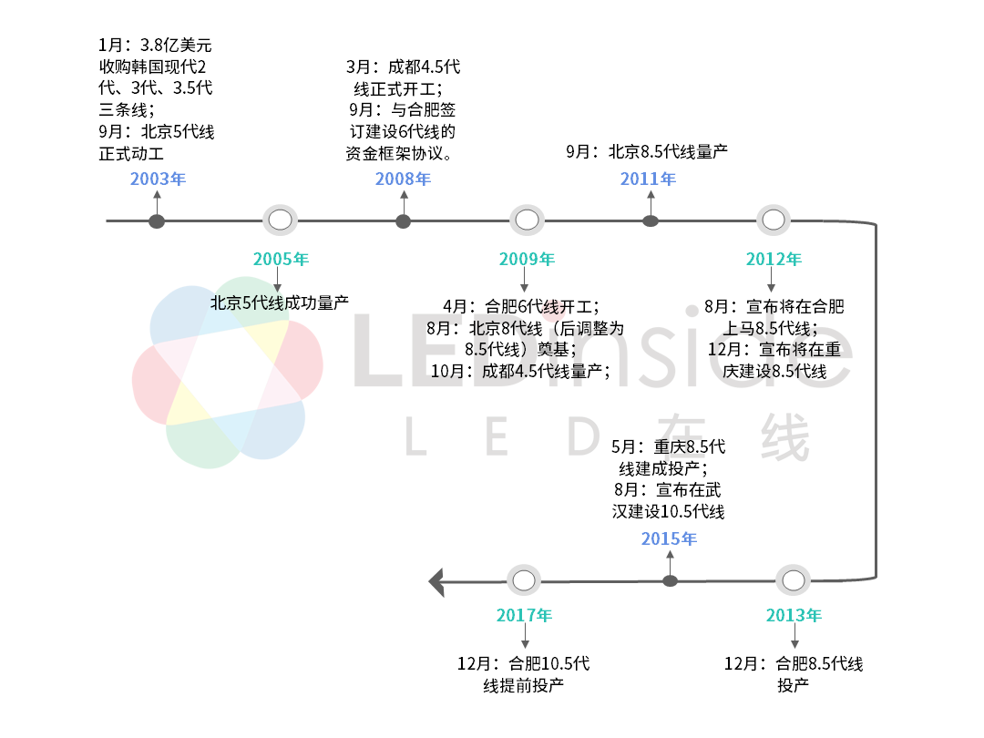 京东方不是第一家尝试自研面板技术的企业,但它是第一家获得成功的企业。2003年,京东方收购了韩国现代的面板线,且在随后的时间里将收购得来的技术加以研究,消化而形成自己的技术,并培育国产供应链;2005年,京东方利用自研技术在北京建立的5代线正式量产,中国无屏时代正式结束。