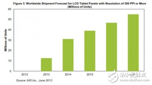 据IHS公司的研究,像素密度为300PPI或更高的液晶面板今年将开始真正进入市场,把下一代平板电脑的分辨率水平带到前所未有的高度。2012年市场上几乎不存在这种面板。