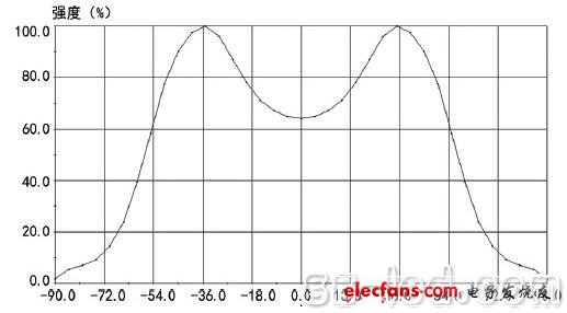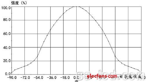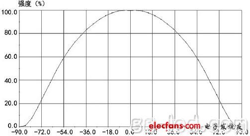 每一个LED光源都有一个特定的光强分布特性,即配光曲线,我们称这个过程叫一次光学设计。大多数情况下,LED光源的配光曲线为朗伯型,即发角强度随角度变化呈余弦分布:
