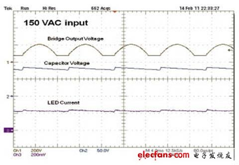 图2 在150 VAC输入电压条件下电路不同部份的电压