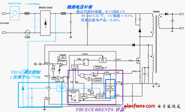 FL7730驱动器具有功率因数校正(PFC)、TRIAC和模拟调光能力