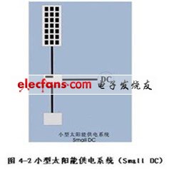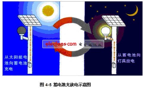 LED太阳能草坪灯是一个小型的太阳能供电系统(图4-2是一个简单的太阳能供电系统)。它的结构非常简单主要由太阳能电池板、充放电控制器、蓄电池、照明电路和灯杆等部分组成(如图4-3)。