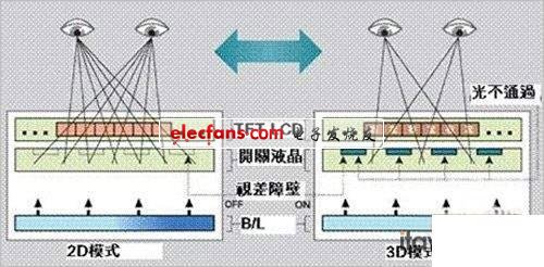 这些条纹宽几十微米,通过它们的光就形成了垂直的细条栅模式,称之为"视差障壁".而该技术正是利用了安置在背光模块及LCD面板间的视差障壁,在立体显示模式下,应该由左眼看到的图像显示在液晶屏上时,不透明的条纹会遮挡右眼;同理,应该由右眼看到的图像显示在液晶屏上时,不透明的条纹会遮挡左眼,通过将左眼和右眼的可视画面分开,使观者看到3D影像。