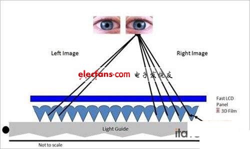 对指向光源(Directional Backlight)3D技术投入较大精力的主要是3M公司,指向光源(Directional Backlight)3D技术搭配两组LED,配合快速反应的LCD面板和驱动方法,让3D内容以排序(sequential)方式进入观看者的左右眼互换影像产生视差,进而让人眼感受到3D三维效果。前不久,3M公司刚刚展示了其研发成功的3D 光学膜,该产品的面试实现了无需佩戴 3D 眼镜,就可以在手机,游戏机及其他手持设备中显示真正的三维立体影像,极大地增强了基于移动设备的交流和互动。