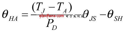 由此产生的结点温度(TJ)和环境温度(TA)之间的温度差(TJ-TA)等于一个电气电压(欧姆定律的热当量):