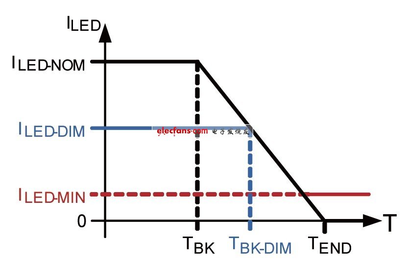 热折返是减少LED故障及避免因为过热而导致LED寿命缩短的常用方法。这种控制方法使用一个与温度成反比的信号,在设置温度断点后降低LED的电流。